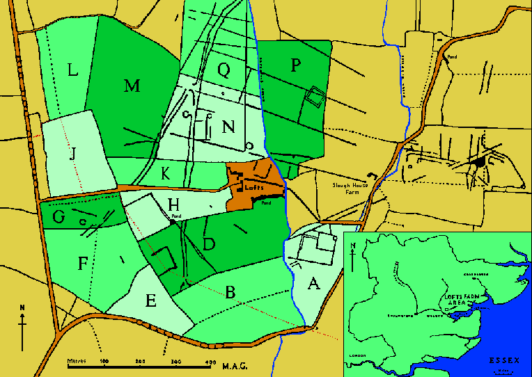 of the present field layout and the relationship of Lofts Farm to the 'moat'